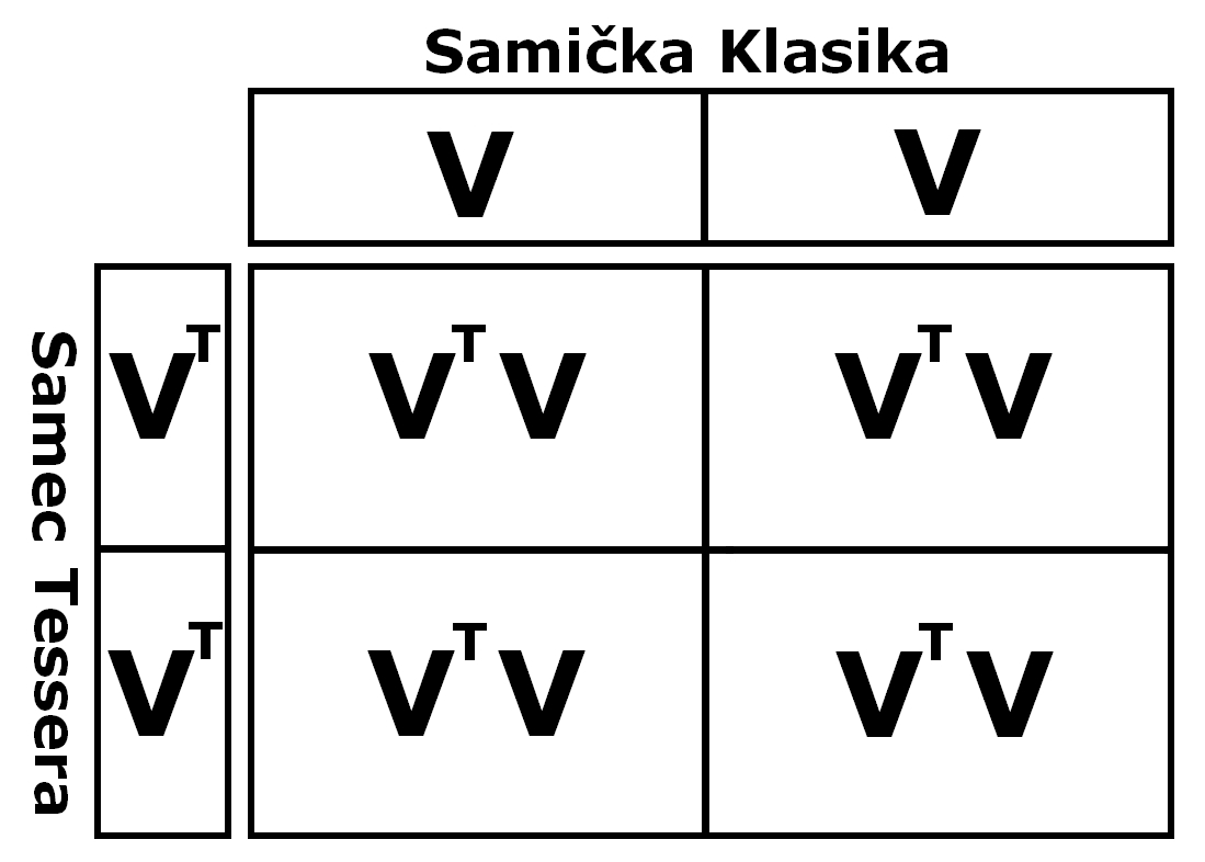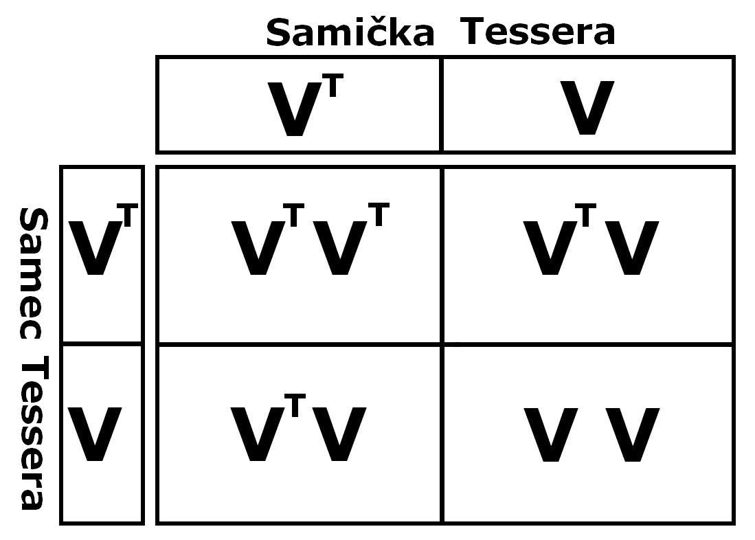 V případě, že by jsme chtěli zkřížit 2 Tessery " VT V " (het Tessera) mezi sebou tak to bude vypadat takto: