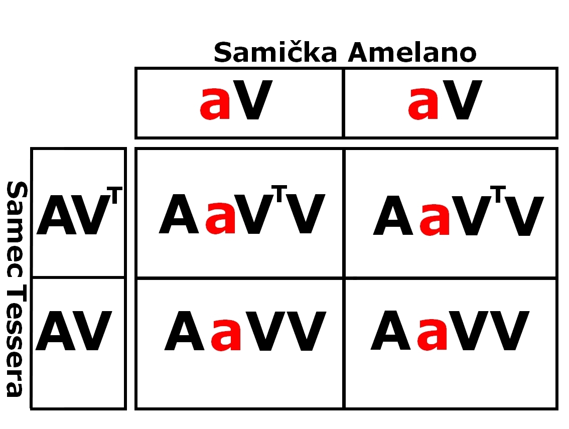 - Samec bude Tessera (genotyp " AA VTV " )